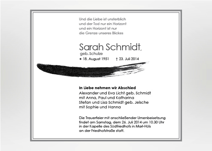 Für Ihre Bestellung oder ein unverbindliches Angebot erreichen Sie mich auch per E-Mail an info@den-tod-anzeigen.de oder Direktkontakt 0177 6868848