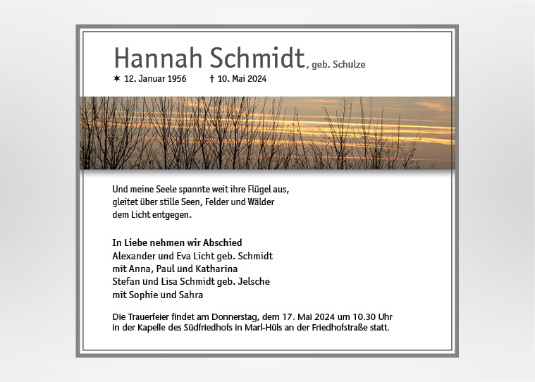 F-04 – Äste im Sonnenuntergang für Traueranzeigen und Trauerkarten