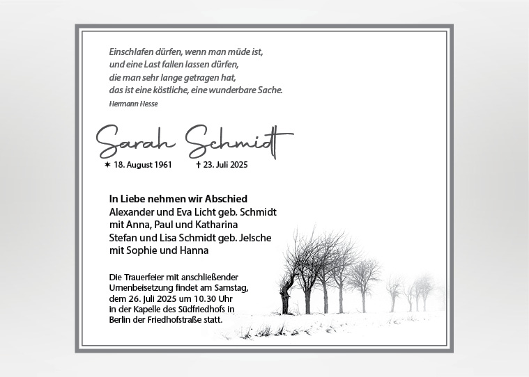 Für Ihre Bestellung oder ein unverbindliches Angebot erreichen Sie mich auch per E-Mail an info@den-tod-anzeigen.de oder Direktkontakt 0177 6868848
