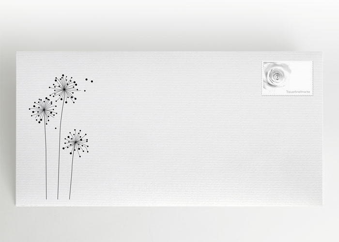 | Beschreibung | Trauermotiv mit weißer Pusteblume/Löwenzahn |