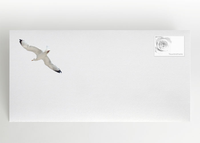 | Beschreibung | Trauermotiv mit blauem Meer und Möwe |