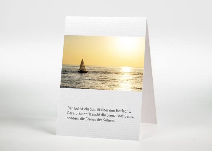 | Beschreibung | Trauermotiv mit Segelschiff auf dem Meer mit untergehender Sonne |