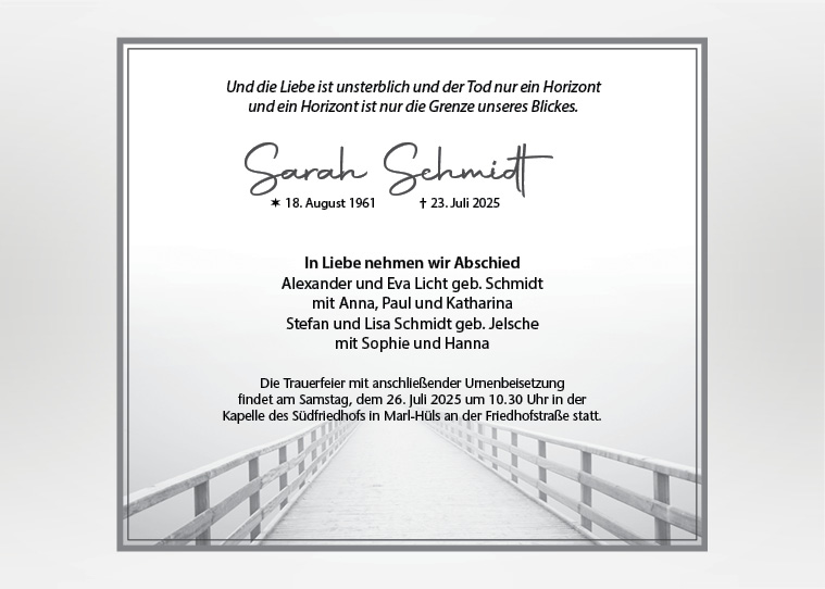 | Beschreibung | Trauermotiv mit Steg ins Meer |