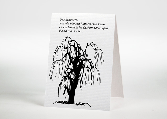 Wir gestalten gerne für Sie eine passende Karte oder Anzeige nach ihren Vorstellungen und Wünschen. Besuchen Sie unsere weiteren Seiten für Traueranzeigen und Trauerkarten mit einer Vielzahl von Motiven.